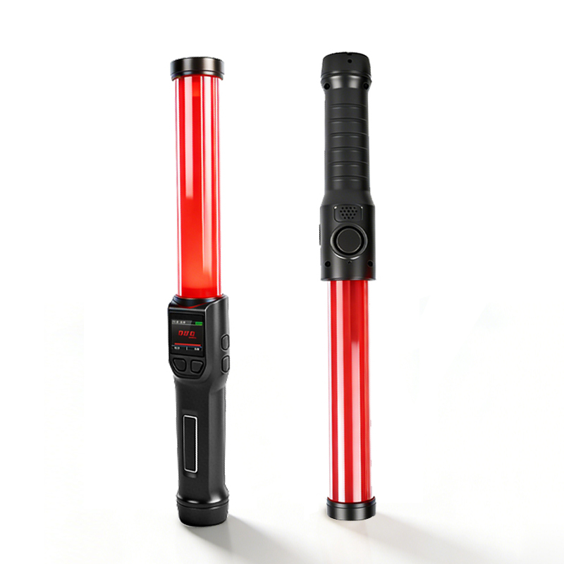 短按一下“警示灯/照明灯/向下按键”开启指挥棒常亮状态,依次短按可循环选择:常亮、频闪、关闭。