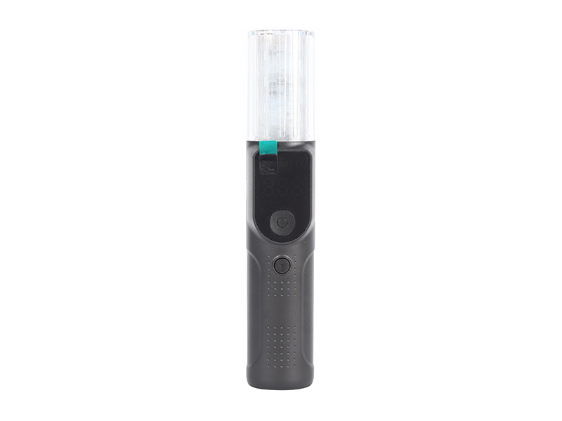 2、开机状态下按O键启动“吹气”检测模式,预热15秒后,对顶端进气口吹气,当吹气提示音响完成一次检测,显示检测结果。