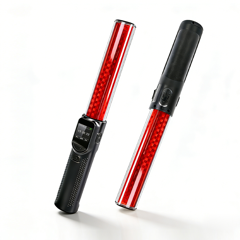 短按一下“警示灯/向下按键”开启指挥棒常亮状态,依次短按可循环选择:常亮、频闪、关闭。